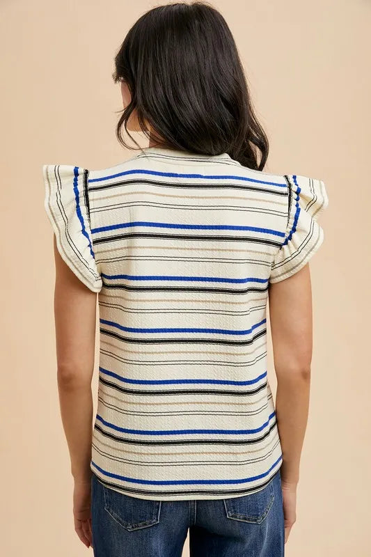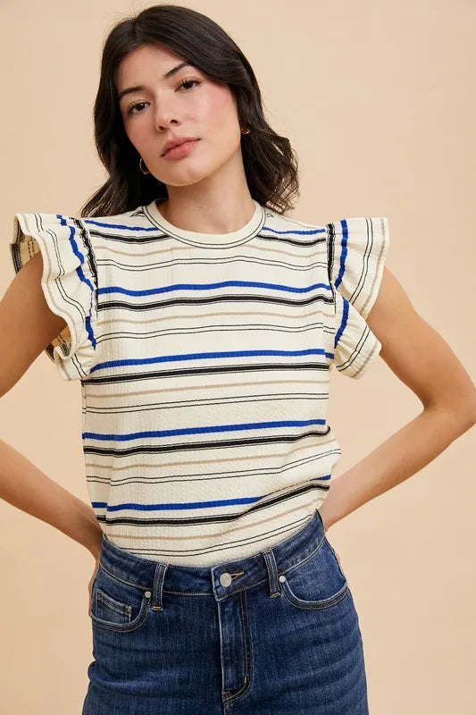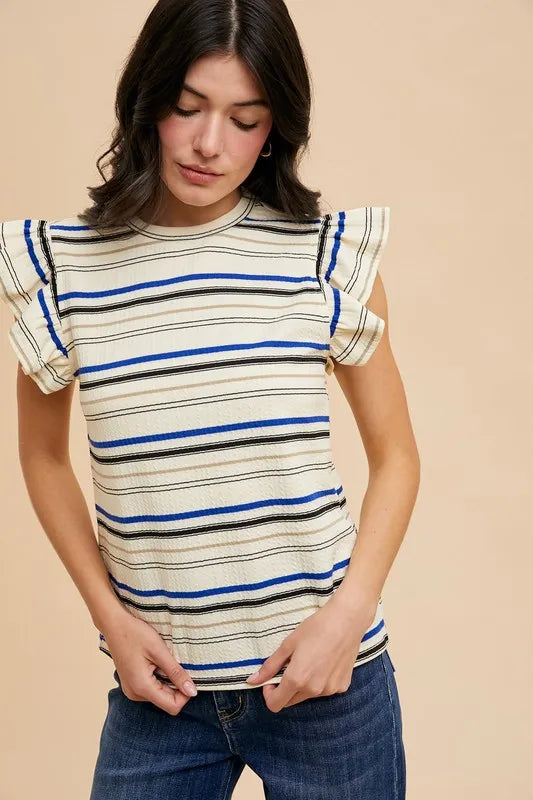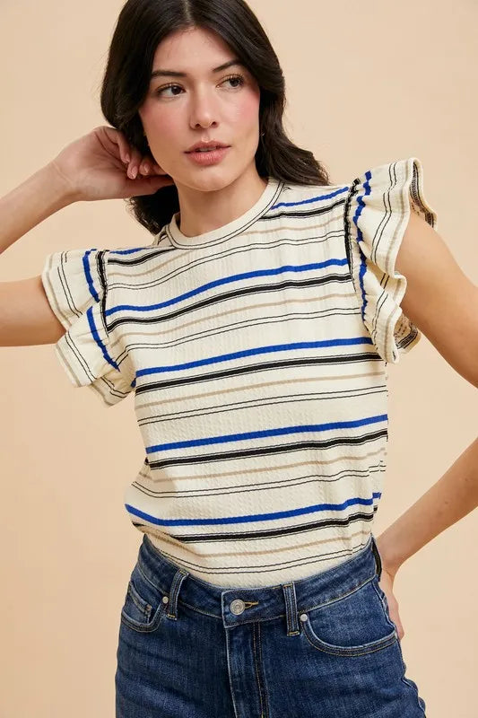 Annie Wear Multi Stripe Ruffle Sleeve Textured Knit Top