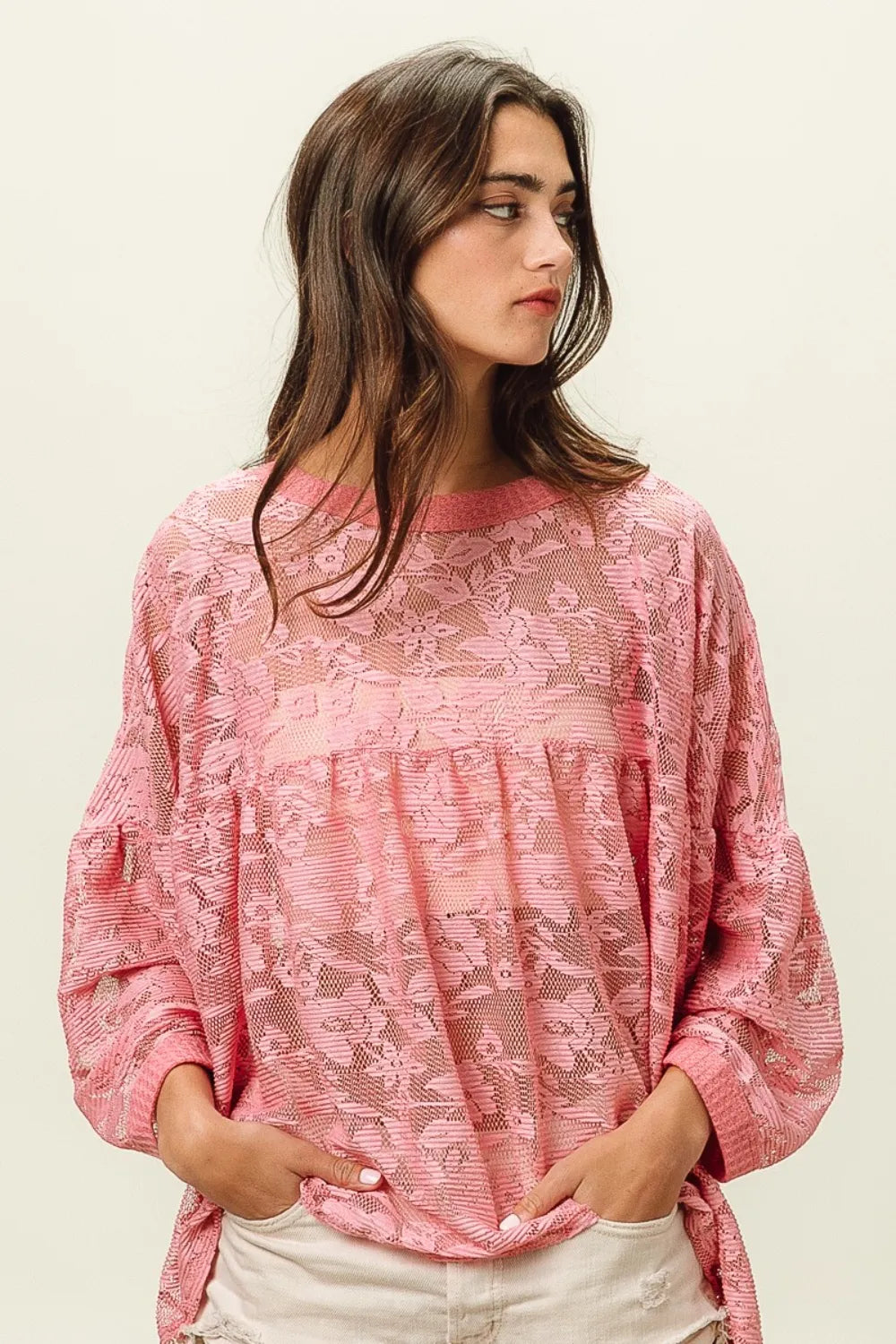 BiBi Floral Lace Long Sleeve Top